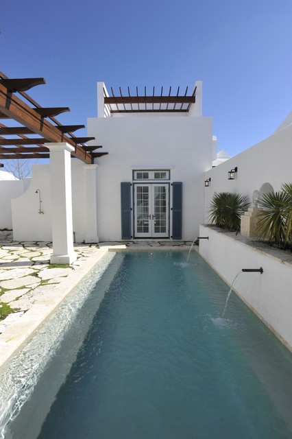 Alys beach pool. Stark white structures canvased by cerulean sky. They had been vacationing in the area for years and the spur of the moment purchase was intended to provide a retreat for the family and their employees. Lines and angles negative and positive vertices and valleys concave convex and complex shapes purposeful placements of form making space for the life and laughter that happens in and it.