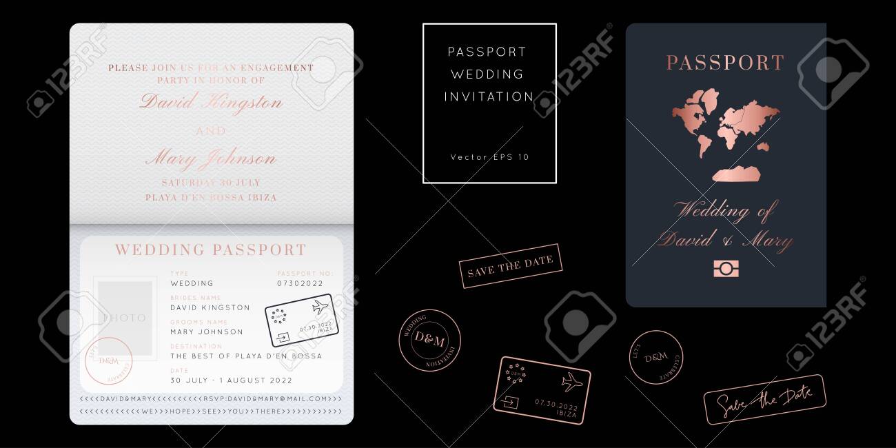 Rose Gold Foil Destination Wedding Passport Invitation Vector Royalty Free Cliparts Vectors And Stock Illustration Image 141278852