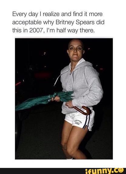Every Day I Realize And Find It More Acceptable Why Britney Spears Did This In 2007 I M Half Way There Britney Spears Meme On Esmemes Com