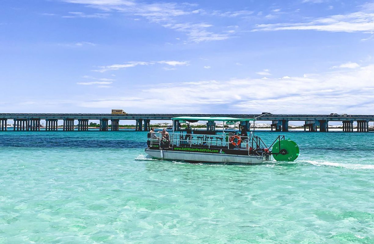 Crab island is a sandbar that is located just south of the marler bridge in destin fl. Once just a tiny island on the south side of choctawhatchee bay the sandbar known as crab island is now one of the most popular things to do in destin for boaters paddlers and swimmers alike. The shallow underwater sandbar means that swimmers boaters and outdoor enthusiasts of all ages can enjoy this one of a kind adventure.