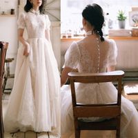 Discount Luxury Beach Boho Wedding Dresses Short Sleeves Cheap Chiffon Long Bridal Gowns High Side Slit Backless Robe De Mariee Sheer Neck Dresses With Lace Elegant Wedding Gowns From Veralove999 96 49 Dhgate Com