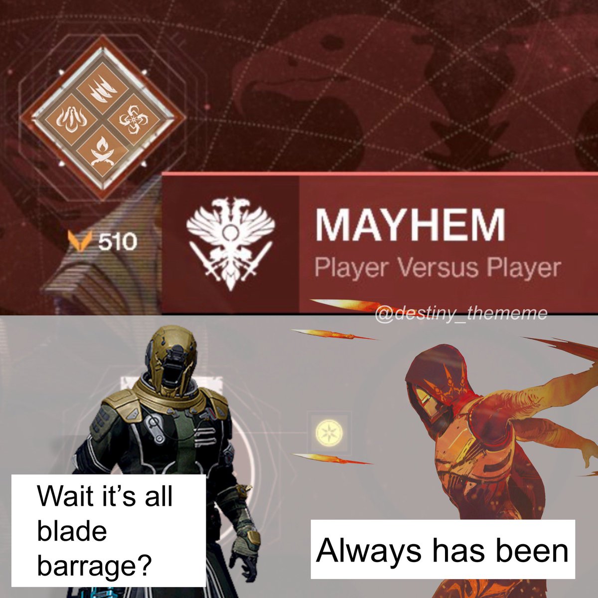All about destiny 2. Sub up and join. We consider blade barrage not causing self damage a bug which we are now addressing.