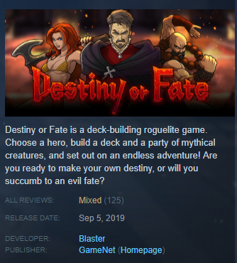 Destiny or fate steam. Destiny or fate free now on steam until aug 28 at 1700 utc. Destiny or fate is a deck building roguelite game. With destiny or fate we tried to create a balanced combination of two popular genres.
