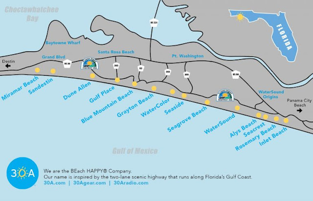 Hwy 30a map. It is an exciting and eclectic mix of hot caribbean colors and soft pastels with architecture to match. Find culture along 30a from small artist studios to the nationally known 30a songwriters festival. At first beachgoers landed on scenic highway 30a the same way sand settles on the seashore.