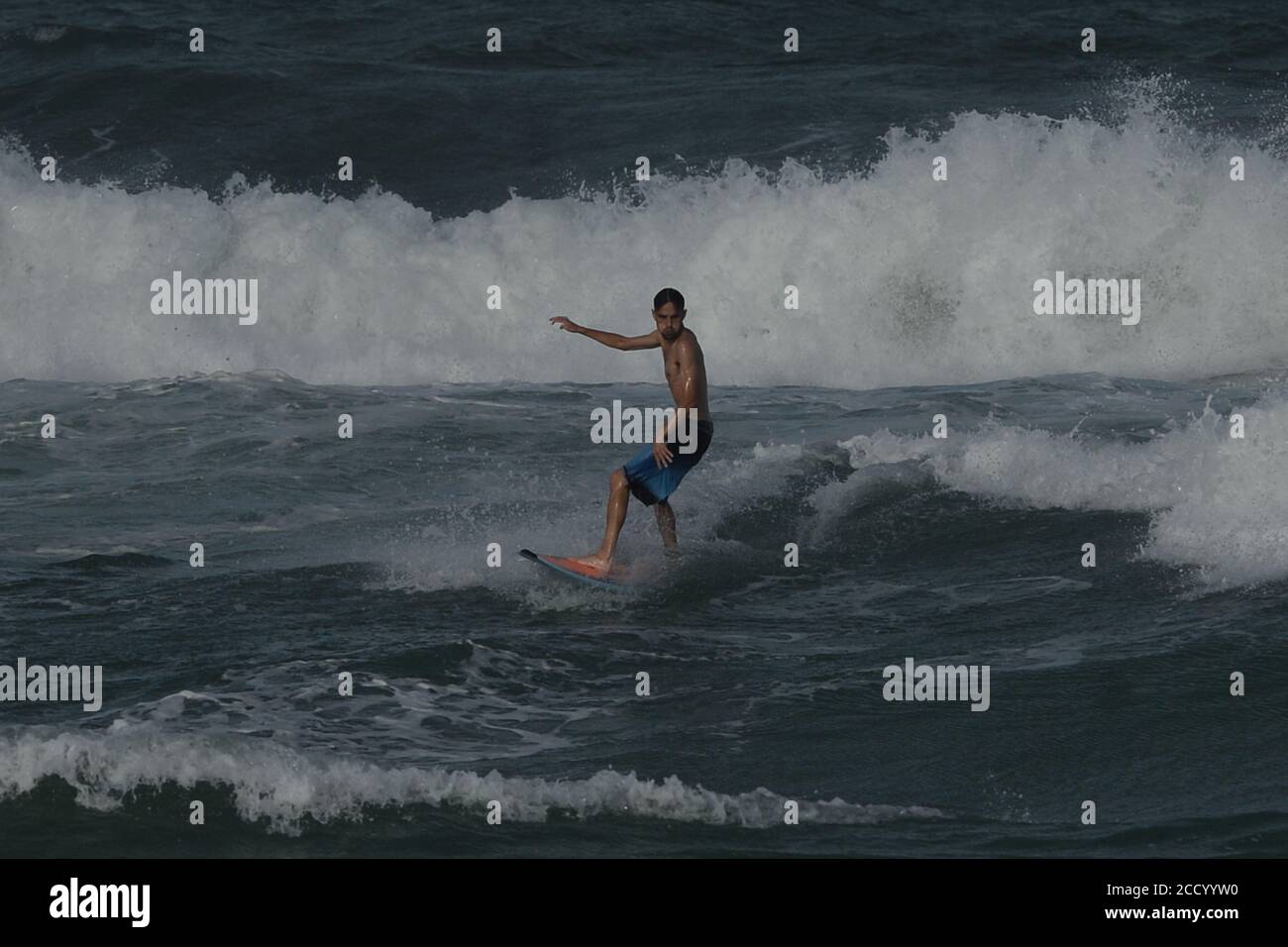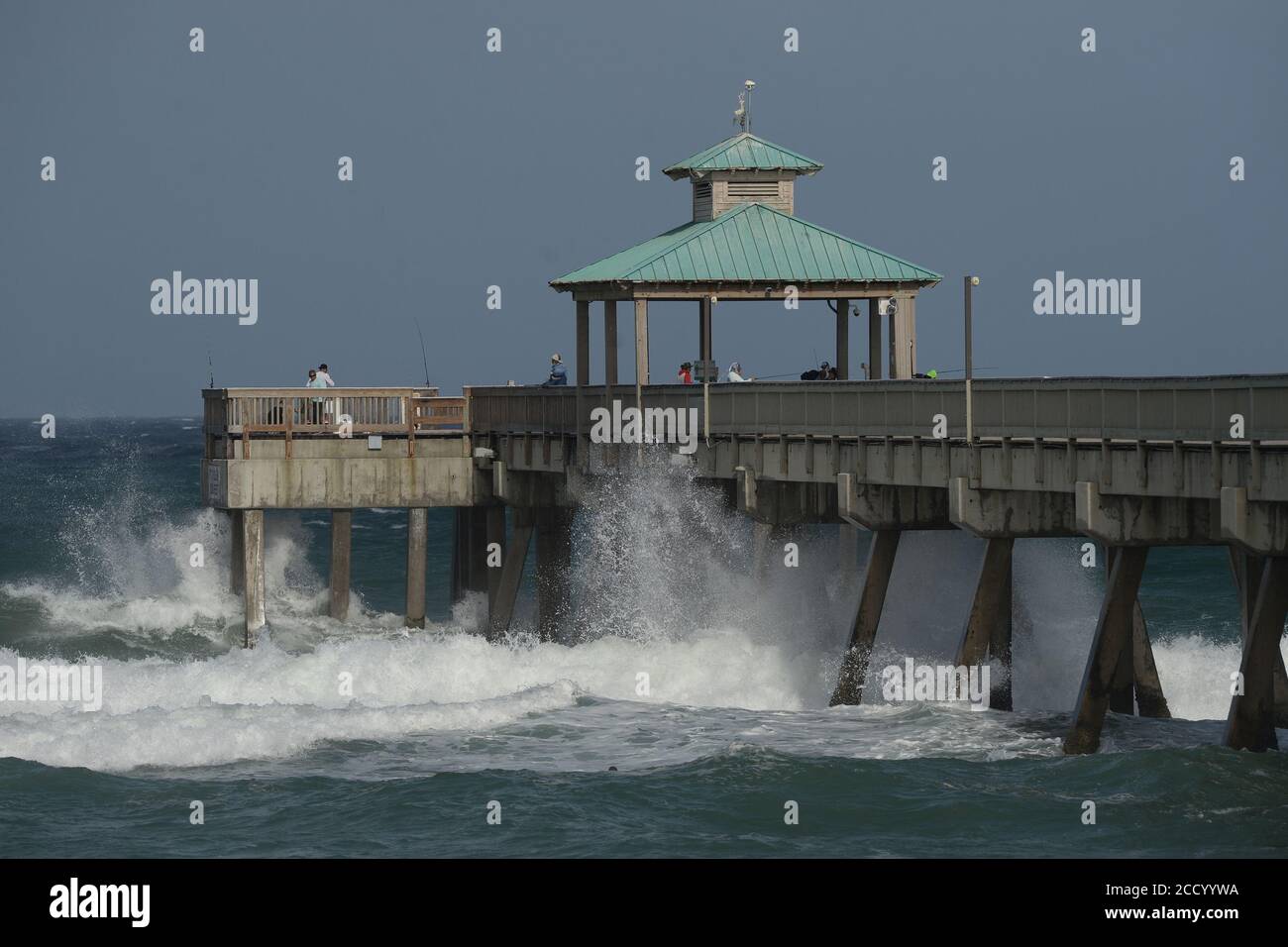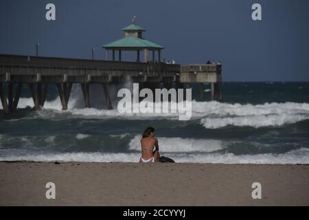 Deerfield Beach Fl Usa 24th Aug 2020 Surfers Seen At Deerfield Beach Pier As Tropical Storm
