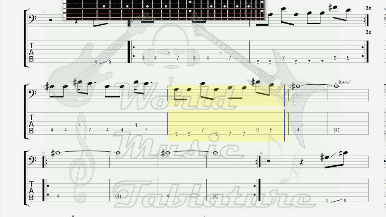 Rated 50 out of 5 by 2 users. Bass tablature for toxic by britney spears. Last edit on may 28 2015.